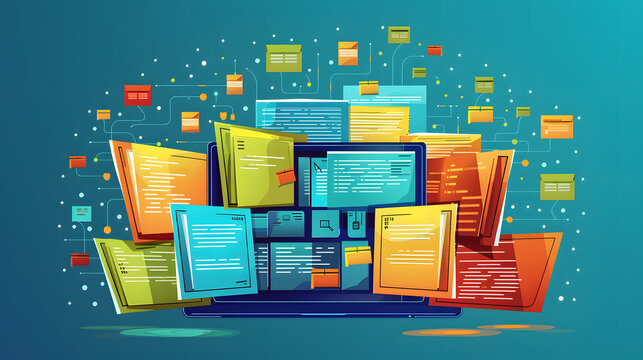 Efficient Document Organization, Illustrate the concept of efficient document management with an image featuring neatly arranged files and folders