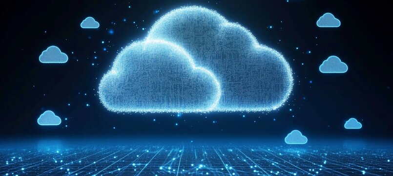 Futuristic internet network illustration featuring advanced cloud storage and global data transfers.
