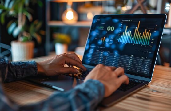 Analyzing data trends tech workspace digital insights modern office close-up view data visualization concepts for enhanced decision making