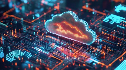 Advanced digital network design with a bold cloud logo, emphasizing cutting-edge technology and data integration