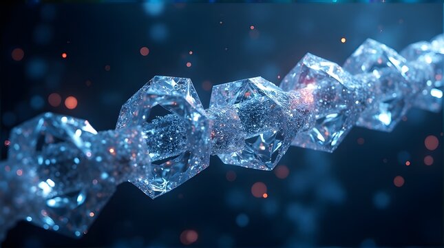 Explore innovative blockchain technology with this stunning interconnected crystal chain, perfect for illustrating cryptocurrency, secure networks, and cutting-edge digital solutions