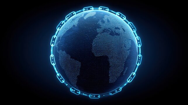Futuristic Digital Globe with Blockchain Chains Representing Global Connectivity and Security in a High-Tech Environment