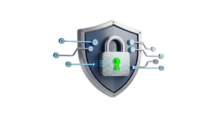 Futuristic digital security shield with padlock symbol