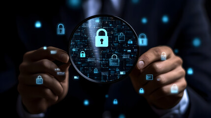 Virtual padlock symbolizing data protection and security. Cyber defense concept