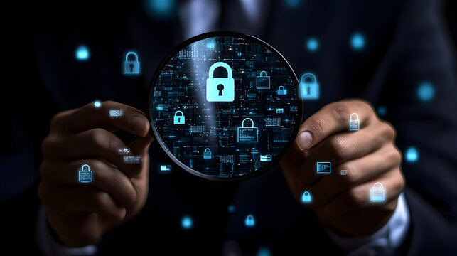 Digital security concept with lock and data analytics overlay