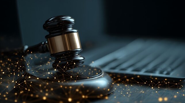 Digital verification and approval process with glowing checkmarks appearing above a laptop as a person types symbolizing successful online validation and confirmation