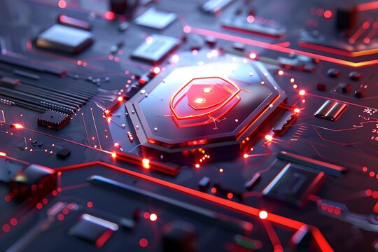 Globe with digital padlock over circuit board, dark background. Concept of global cybersecurity and digital protection