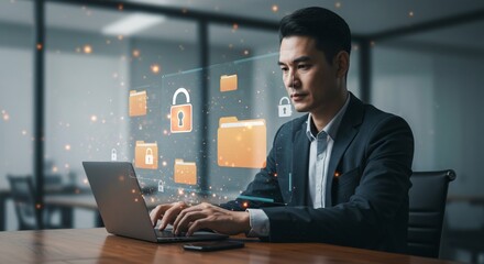 Businessman working on laptop data security concept