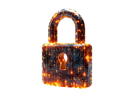 Glowing digital padlock illustration with embedded binary code, security concept