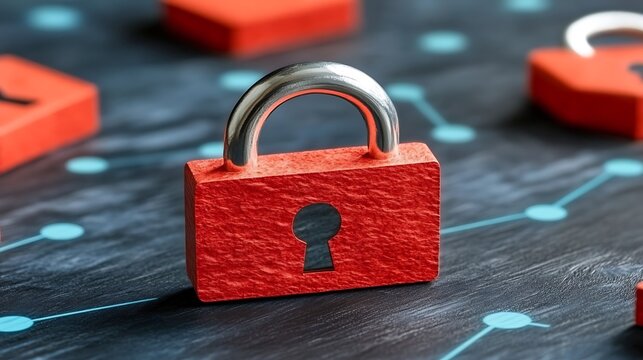 Abstract image of cyan padlock on red-orange digital background, symbolizing data security and online protection