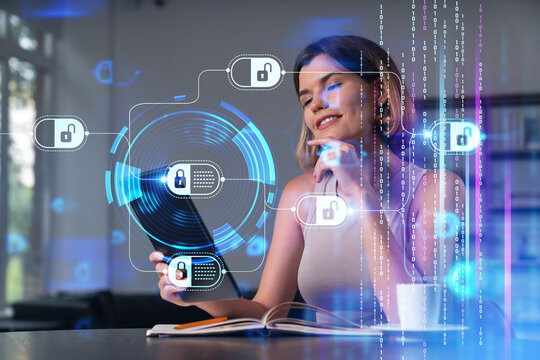 Digital Security Concept With Transparent Lock And Data Matrix Images