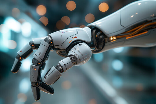 Robot hand close up, artificial intelligence element technology robot futurist cyborg science.
