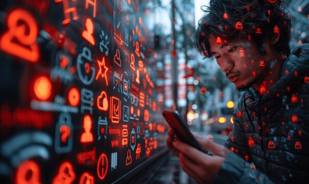 Smartphone warning exclamation mark, urgent action security risk, cyber attack concept, data breach caution, online safety alert, network vulnerability, error notification, maintenance danger