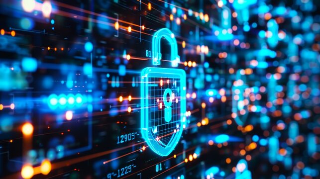 Digital Security Hologram With Coding Interface And Padlock Illustration Images