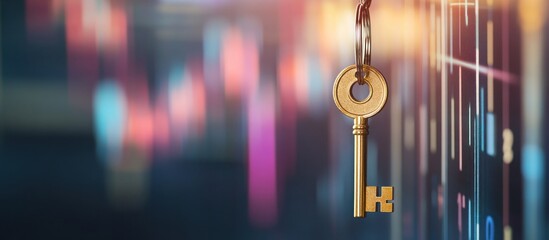 Golden key against financial data background, symbolizing market access or success