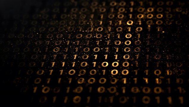 Futuristic abstract binary code background featuring a digital data pattern of green matrix lines on a tech wallpaper design for a modern internet software business concept