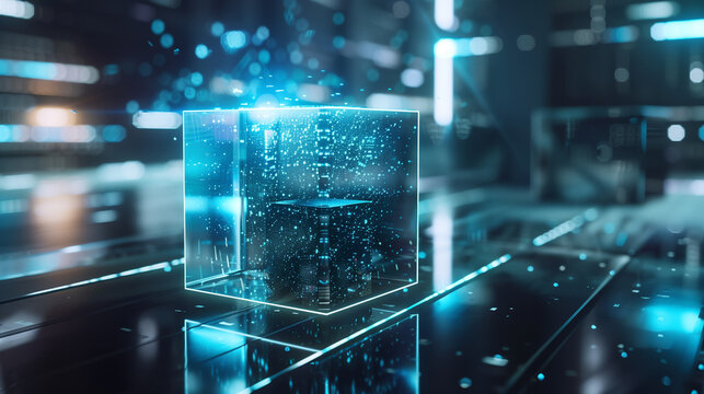 futuristic technology cube hologram digital data internet connectivity, cyber tech background wallpaper