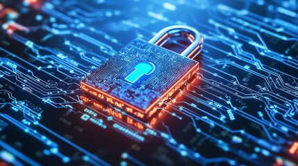 Glowing padlock overlaying intricate circuit board, symbolizing digital security