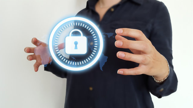 Digital network and security interface with lock icon