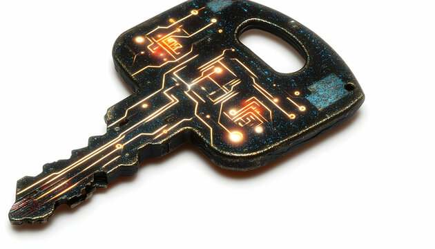 A futuristic key with circuit board design