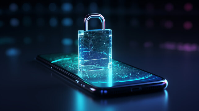 A glowing digital lock icon sits at the center of a futuristic circuit board pattern with bright blue lines and nodes to create a high tech visual emphasizing security and data protection