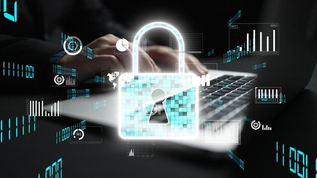 This image illustrates the concept of cyber security featuring a digital lock overlay on a laptop, symbolizing data protection and safe technology practices. Xenic