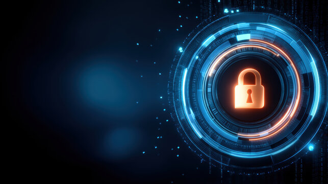 Cybersecurity concept with glowing digital padlock icon