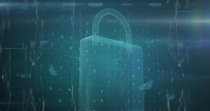 Image of digital interface online security biometric padlock over digital blue tunnel