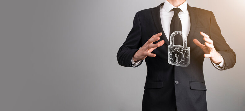 Cyber security and data protection information privacy internet technology concept.Businessman working on smartphone laptop computer show padlock protecting business and financial data