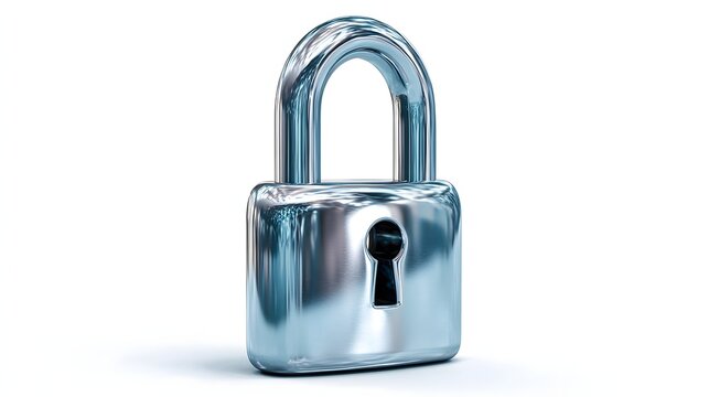 Shiny silver padlock isolated on white background