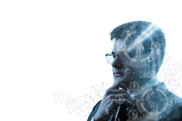 The man in whose head the brain is locked and the chain. The concept of digital security. Closed personal information