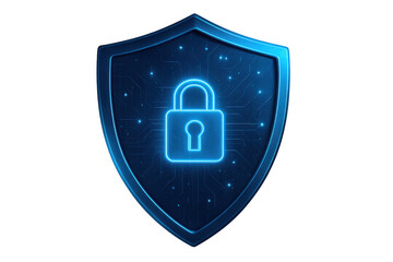 Digital shield securing private data with an glowing padlock icon, representing robust cybersecurity protection