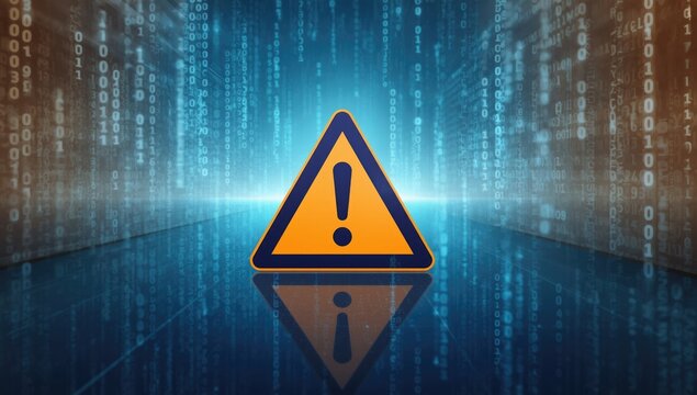 Digital Warning: A striking visual of a microchip emblazoned with an illuminated warning symbol, signifying potential system vulnerabilities and technological risks.