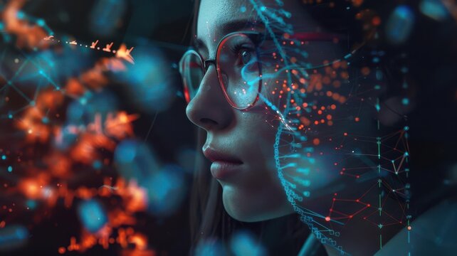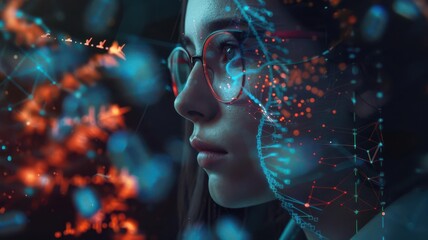 AI analyzing genetic data for personalized medicine, Tech, Cool Tones, Digital Art