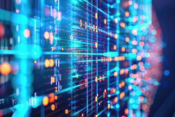 Digital information represented by a binary code sequence in blue tone, symbolizing data processing and digital technology