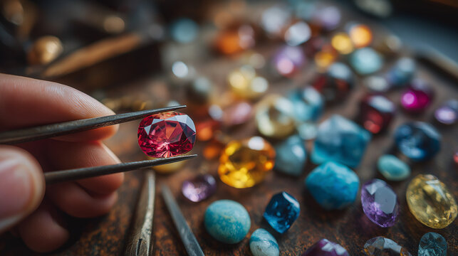 AI generator images of Multicolored gemstones shining brightly in a radiant white environment with elegance and luxury, Assorted colorful precious gemstones and jewelry Luxury Designer Necklaces