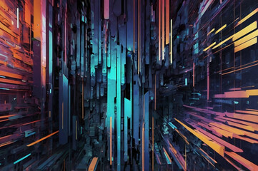 Abstract digital geometric shards glowing with neon light digital art