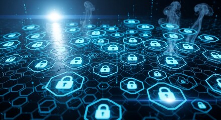 Digital lock symbol on a futuristic background