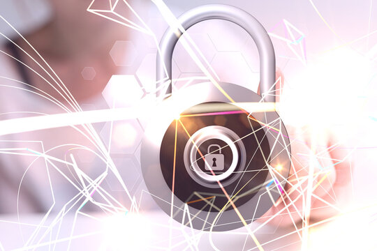 Businessman touch virtual padlock icon over the Network connection, Cyber Security Data Protection Business Technology Privacy concept