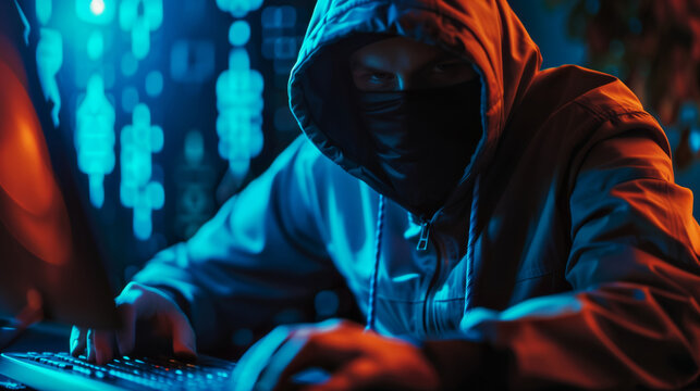 Hacker in the hood, hacker in the darkroom, internet security concept, hacking, online virus infection