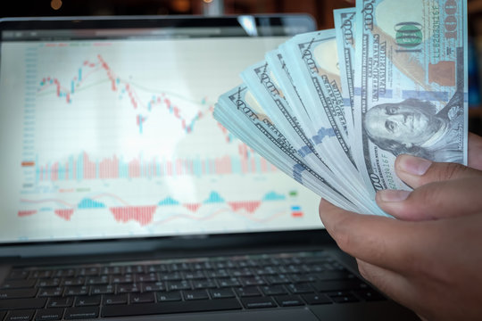stock market chart on monitor laptop computer and Dollar bank simulate.