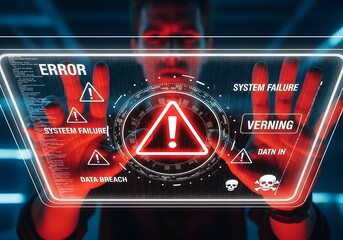 Person displaying digital interface with skull and financial data graphs image photo