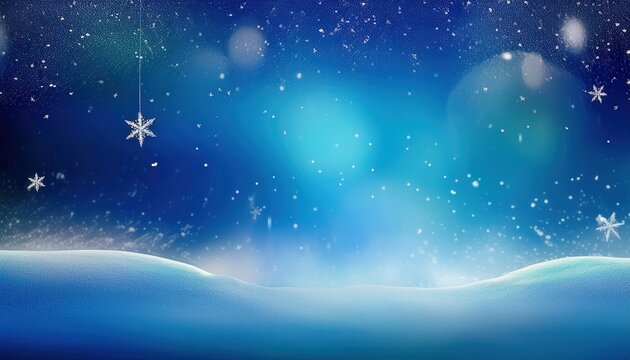 winter snow landscape with glowing blue sky and falling snowflakes creating magical seasonal background for wallpaper or banner