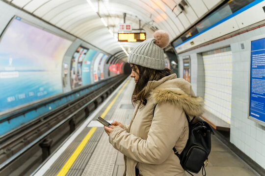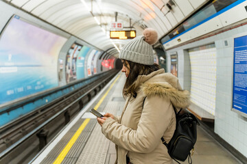 African american woman connecting socially on public transport