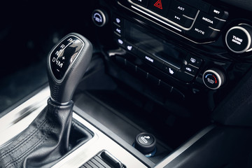 Air conditioning button inside a car. Climate control unit in the new car. Modern car interior details. Car detailing. Selective focus