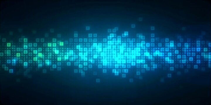 Abstract Blue Digital Wave:  A mesmerizing display of vibrant blue squares forming a dynamic wave pattern, symbolizing technology, data flow, or digital innovation.