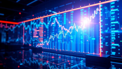 AI generative. Graphic chart stock exchange illustration with neon glow effect. Futuristic of finance and business background. 11