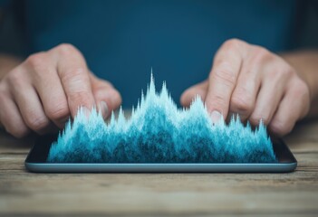 Digital Financial Data: Hand Interacting with a High-Tech Touchscreen Display. Male finger point to a chart on a screen. AI generative