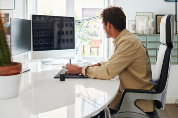 Creative professional working on graphic design with stylus