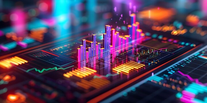 Futuristic Digital Interface Showcasing Vibrant 3D Financial Charts and Growth Projections for Innovative Market Analytics